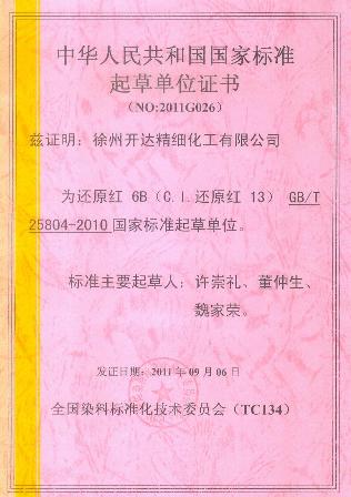 我公司參與制修訂還原染料國家行業(yè)標準